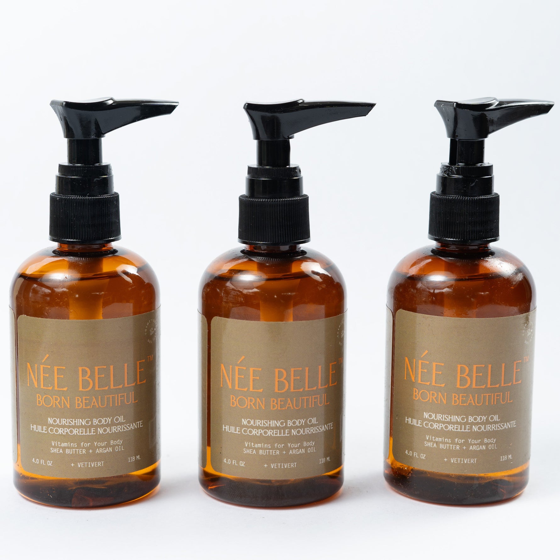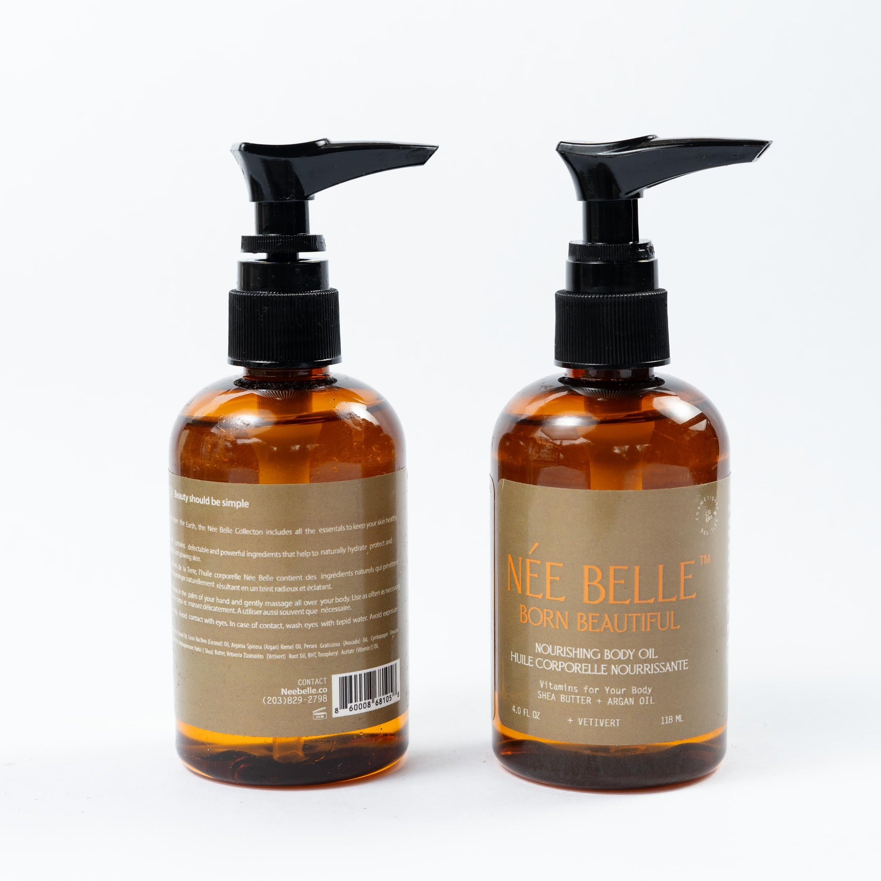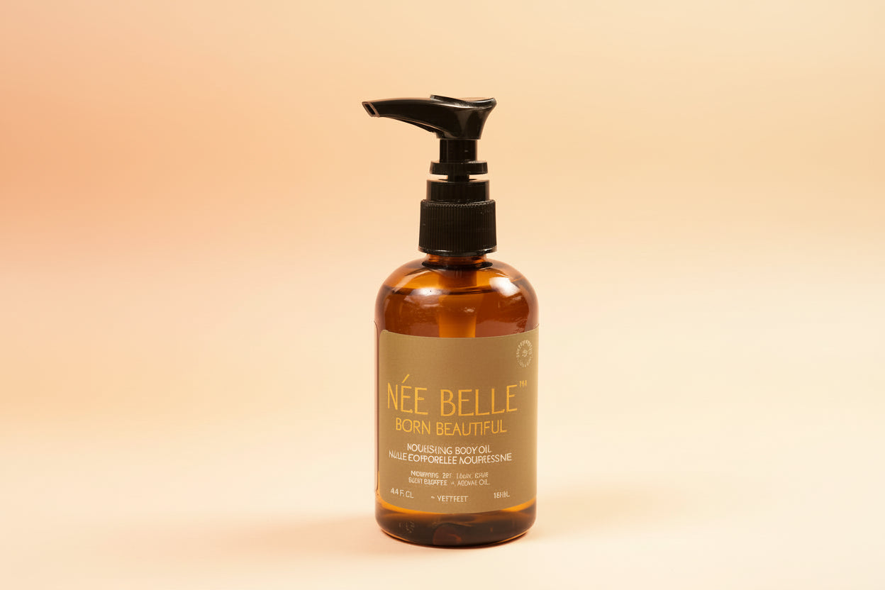 Née Belle Nourishing Body Oil delivers deep moisture and enhanced elasticity without heaviness to your skin. Infused with natural, simple, and powerful ingredients with lemongrass and vetiver, including grape seed and avocado oils, it delivers a smooth and silky layer rejuvenating the skin. Perfect all types of skin including dry or sensitive skin.